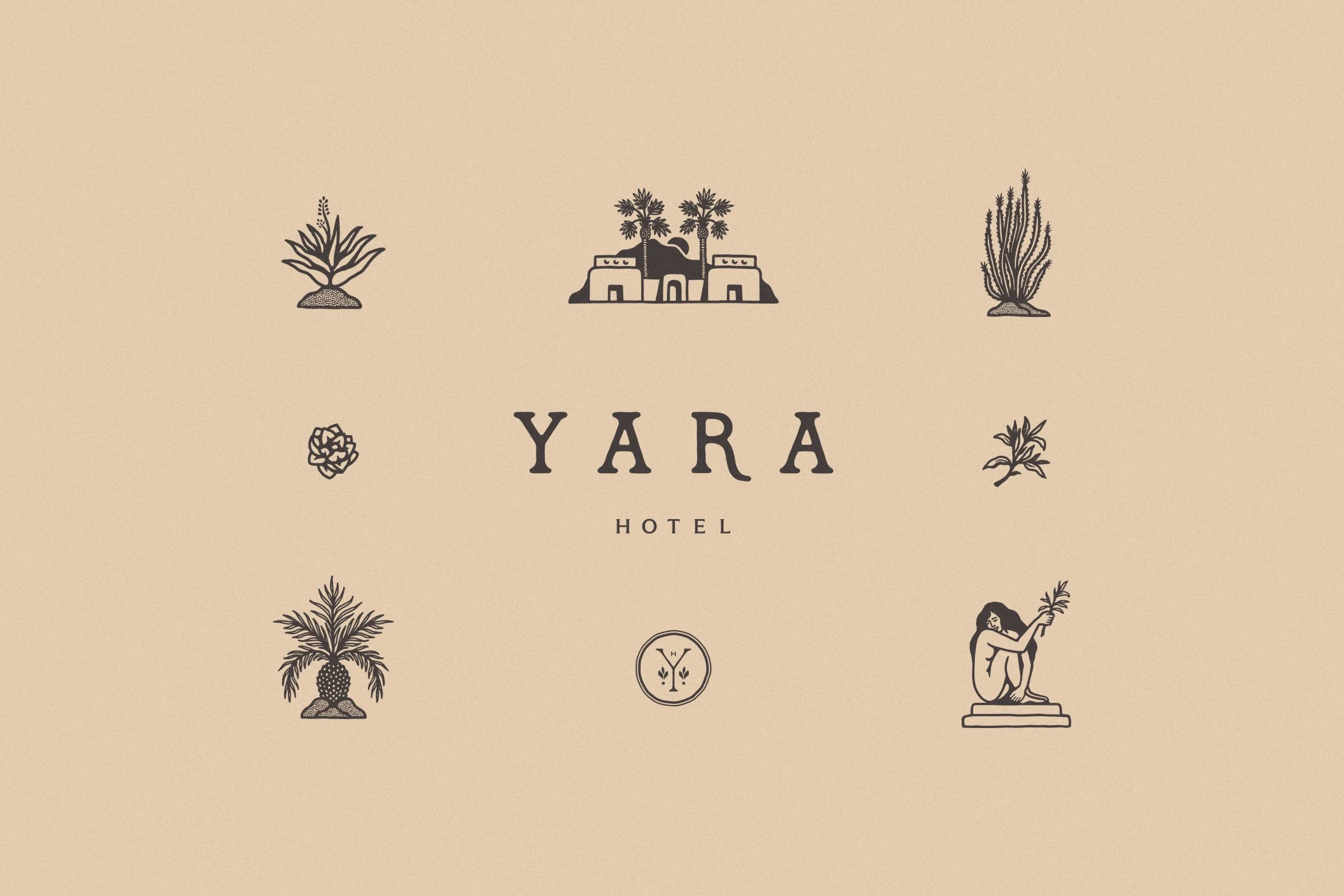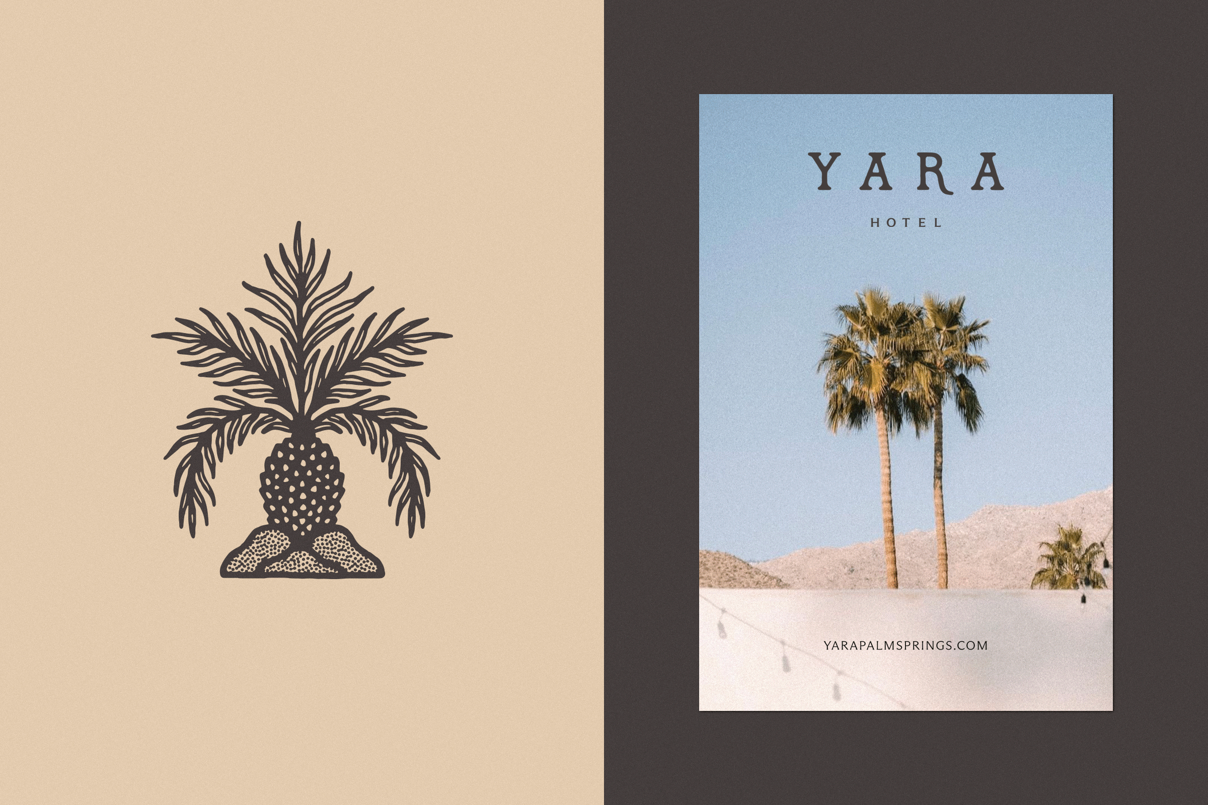 Nestled beneath the San Jacinto mountains, the Yara Hotel is a 10-room boutique desert oasis in the heart of Palm Springs. Inspired by the natural beauty of the desert, the hotel blends Balinese and Mediterranean influences with artisanal motifs and light, airy interiors. The identity owns a sense of tranquility through its warm palette, simplistic typography, and sense of balance.
